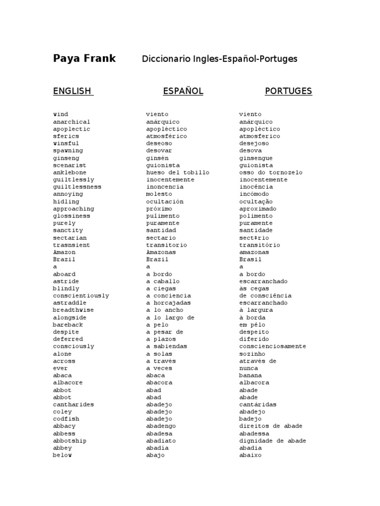 Diccionario Ingles Espanol Portugues Abuelo Naturaleza